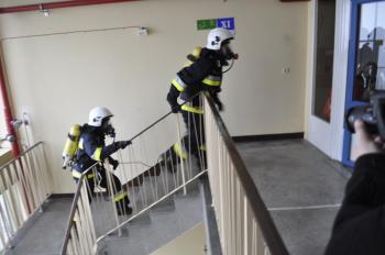 Zawody strażaków-ratowników "Wieżowiec 2016" wymagały nie lada krzepy: bieg na jedenaste piętro budynku w pełnym umundurowaniu, w masce i z aparatem powietrznym. Na starcie stanęły 23 dwuosobowe zespoły z całego powiatu oświęcimskiego.
