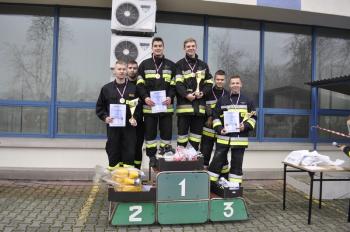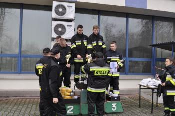 Pierwsze miejsce z czasem 77,3 sekundy zdobyła ekipa z Broszkowic. Jako jedyna zeszła poniżej 80. sekund. Różnica między kolejnymi na podium załogami z Bobrka (80,2 s.) i Brzezinki (80,4 s.) była minimalna. Komisja sędziowska wyróżniła też jedyną kobiecą parę. Panie, jak zauważył wójt Albert Bartosz, witając zawodników, biegły po urodę, natomiast panowie – po zdrowie. Nagrodami dla najlepszych zespołów był sprzęt strażacki.