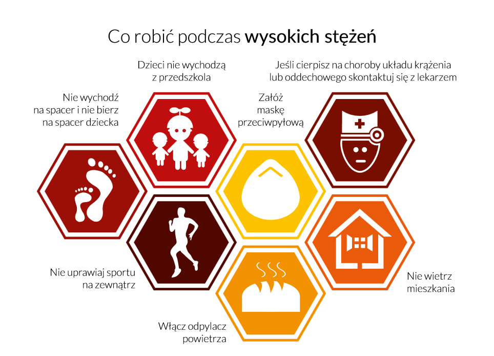 • śledzić informacje na stronach internetowych o występujących przekroczeniach wartości dopuszczalnych stężeń zanieczyszczeń w powietrzu oraz o ryzyku wystąpienia takich przekroczeń.