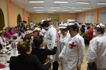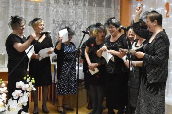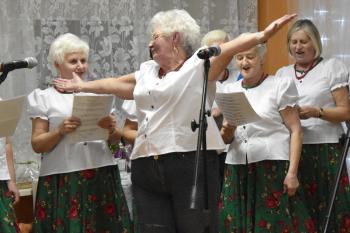 Uczestniczki posilone poczęstunkiem zaprezentowały talenty wokalno-aktorskie. W przyśpiewkach na ludową nutę znalazły się ciepłe słowa dla organizatorów imprezy. Rymowanki były pełne autoironii i dystansu, a skecze pikantnego ale nie dosadnego dowcipu. Bohaterka jednej ze scenek, Bronia, odrzuciła zaloty budowlańca, stolarza i prawnika, aby następnie porwać do tańca wójta Alberta Bartosza. Warto zwrócić uwagę, że ten gest był bezinteresowny a skecz nie miał podtekstów - przedstawiły go mieszkanki Dworów, które leżą przecież na terenie miasta, a nie gminy Oświęcim.