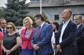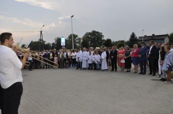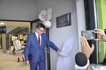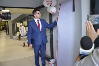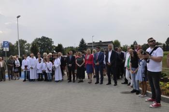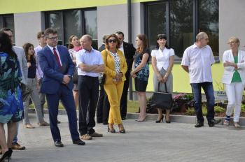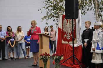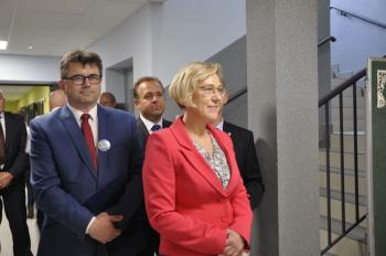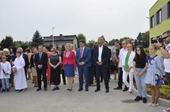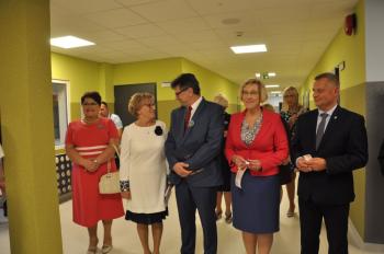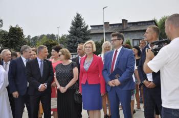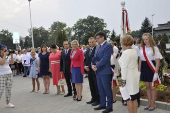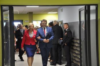 Uroczystego przecięcia wstęgi dokonali wójt Albert Bartosz, kurator Barbara Nowak, Tomasz Czubek, Maria Brombosz, Piotr Śreniawski oraz przedstawicielki Rady Rodziców i uczniów SP w Porębie Wielkiej. Następnie wójt Bartosz odsłonił jeszcze pamiątkową tablicę przy wejściu do szkoły.