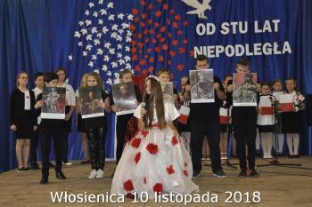 Uroczystości we Włosienicy w sobotę 10 listopada przygotowali uczniowie i nauczyciele z pomocą niemal wszystkich miejscowych środowisk i organizacji. Po modlitwie za Ojczyznę i poległych w Jej obronie zgromadzeni złożyli kwiaty pod pamiątkową tablicą i spotkali się w szkole.