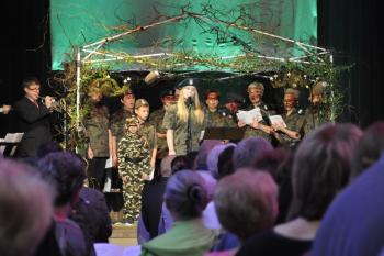 Powszechną wesołość wzbudziła musztra rezerwistów i składane przez nich dziarskie meldunki. Szeregowi przypomnieli sobie dawne czasy, śpiewając "Godzina piąta, minut trzydzieści". Wnet też na parkiecie zakręciły się pierwsze pary, bo przecież "za mundurem panny sznurem", a na Biesiadzie Patriotycznej w Grojcu również panie. Także menu było wojskowe – amatorzy śpiewania posilili się tradycyjną grochówką. Kolejne piosenki intonowane przez chór z Libiąża posłużyły zarazem za akompaniament do tańca.
