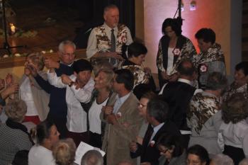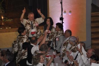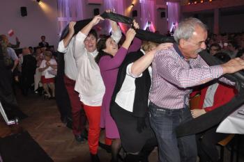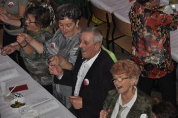 Równocześnie trwała rywalizacja między prawą i lewą stroną sali. Żywiołowy doping towarzyszył rzucaniu papierowych samolotów i kulek, a najtrudniejszy okazał się pokaz sprawności prowizorycznych czołgowych gąsienic, w które zostały ubrane reprezentacje obu ekip. Śpiew nie milkł podczas zawodów. Po ułańskich piosenkach przyszedł czas na partyzanckie motywy: "Serce w plecaku", "Rozszumiały się wierzby płaczące", czy "Warszawskie dzieci". Nie mogło zabraknąć filmowych tematów z "Czterech pancernych" i "Pana Wołodyjowskiego". Biesiadnicy odświeżyli też niezapomniane przeboje festiwalu w Kołobrzegu – "Przyjedź mamo na przysięgę" i "Szumi dokoła las".