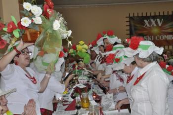 Inwencją popisały się wszystkie biesiadniczki, prezentując fantazyjne i barwne kostiumy oraz dowcipne przyśpiewki i rymowanki ułożone specjalnie na tę okazję. Przy stołach zasiedli również nieliczni panowie, którzy jednak ulegli konwencji babskiego combra i zamaskowali swoją odrębność przy pomocy spódnic i peruk.
