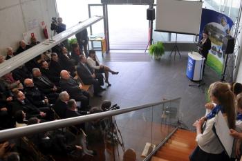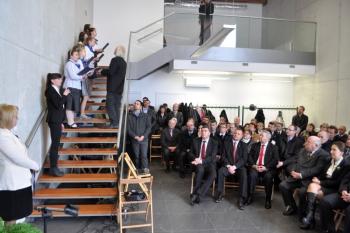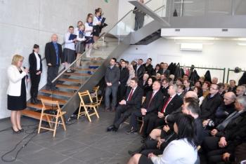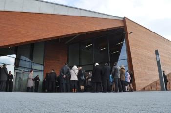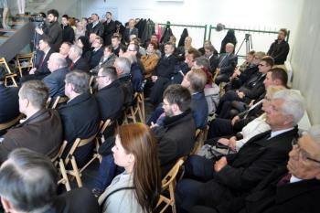 Pojawili się także projektanci futurystycznej bryły obiektu i jego budowniczy, lokalni przedsiębiorcy, duchowni, szefowie gminnych instytucji, radni i sołtysi. Stronę rządową reprezentował wicewojewoda małopolski Andrzej Harężlak.