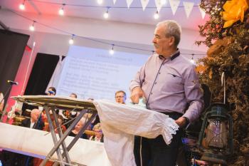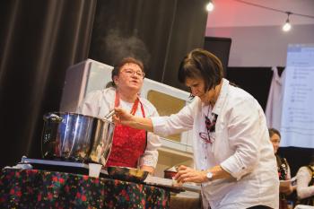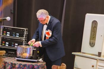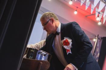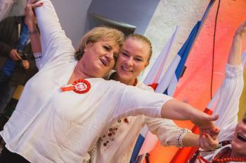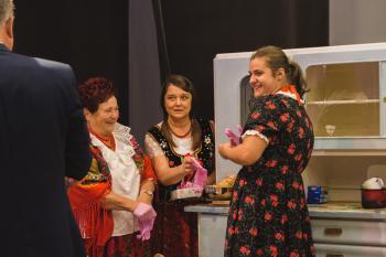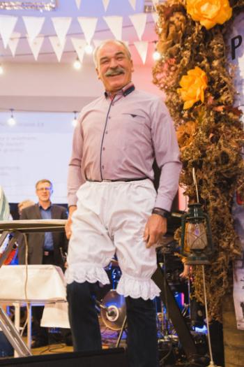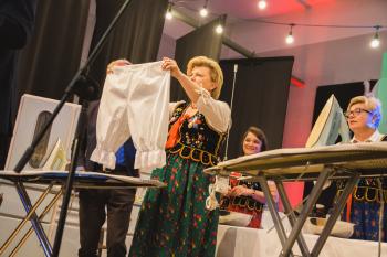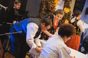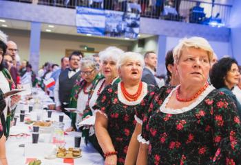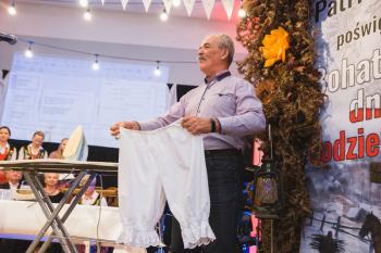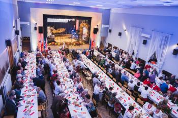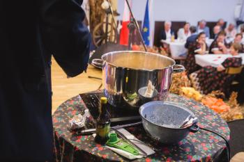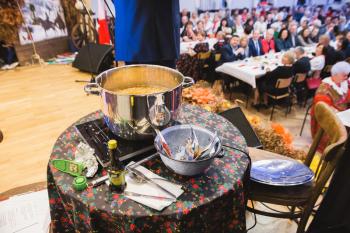 Wraz z melodią "Jak długo na Wawelu" w dłoniach biesiadników pojawiły się chorągiewki i powiewały już przez cały wieczór, mimo że repertuar stawał się coraz mniej wojskowy i oficjalny. Zawody prawej i lewej części sali rozpoczęło krojenie chleba do zupy, która coraz rzadziej gości na naszych stołach, czyli wodzianki. Po konkurencji dla pań w szranki stanęli panowie. Ich zadaniem było wyprasowanie damskich reform z falbankami.