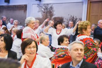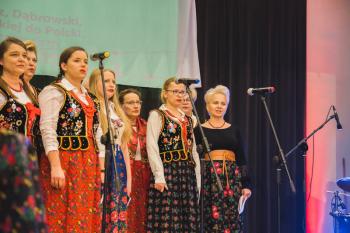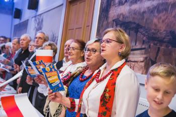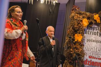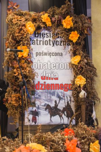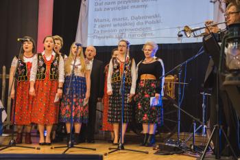 Tegoroczne spotkanie z okazji Święta Niepodległości było poświęcone bohaterom dnia codziennego – matkom, żonom i wszystkim tym, którzy troszczyli się o dom i rodzinę, żeby weterani bitewnych pól mieli dokąd wracać. Dlatego scenę wypełniły swojskie, kuchenne rekwizyty. Z tym wystrojem w tle salę Domu Ludowego wypełniły słowa żołnierskich piosenek: "Wojenko, wojenko", "Piechota, ta szara piechota", "Przybyli ułani" i "Raduje się serce, raduje się dusza".