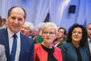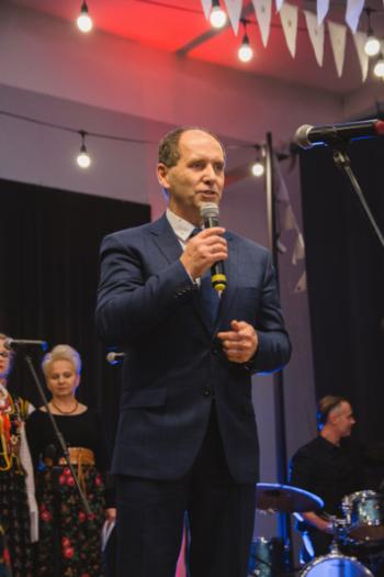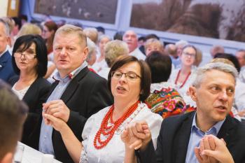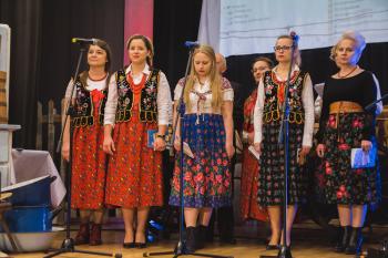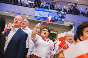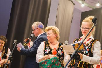Wieczór rozpoczął się "Mazurkiem Dąbrowskiego". W podniosłych chwilach rozbrzmiewają wszystkie cztery zwrotki narodowego hymnu, tak też było tym razem. Równie uroczyście odśpiewano Pieśń Reprezentacyjną Wojska Polskiego, czyli "Marsz Pierwszej Brygady". Prowadzący Biesiadę dyrygent chóru Canticum Canticorum Piotr Ciuła zaprosił na scenę wójta Mirosława Smolarka, który przywitał wszystkich gości.