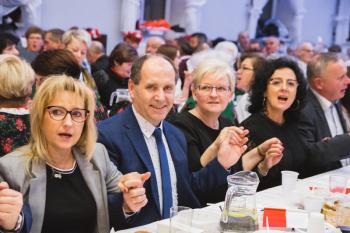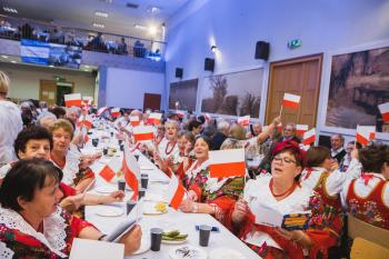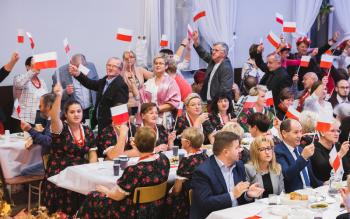 Mieszkańcy naszej gminy świętowali Niepodległość wesoło, ze śpiewem na ustach, kłaniając się tradycji, często w regionalnych strojach. 101 rocznicę odzyskania Niepodległości fetowali, biesiadując 8 listopada w Domu Ludowym w Grojcu.
