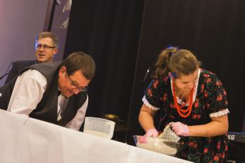 Chórzyści z Libiąża intonowali w tym czasie kolejne szlagiery. "Marianna", "Wiła wianki", "Ukraina" i "My, Cyganie" towarzyszyły rywalizacji małżeństw w zespołowym przygotowaniu ciasta na placki ziemniaczane. Do jego zamieszania i usmażenia pierwszych porcji został wywołany wójt Smolarek. Podjął to wyzwanie zdjąwszy marynarkę, co dla wszystkich uczestników imprezy było oczywistym znakiem, że część nieoficjalna trwa w najlepsze.