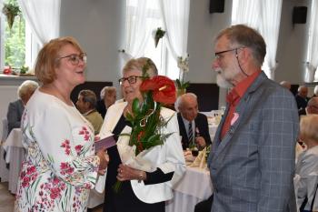 Życzenia i upominki jako pierwsze odebrały małżeńskie pary, które przeżyły w razem 60 lat. Diamentowe Gody w 2021 roku obchodzili: